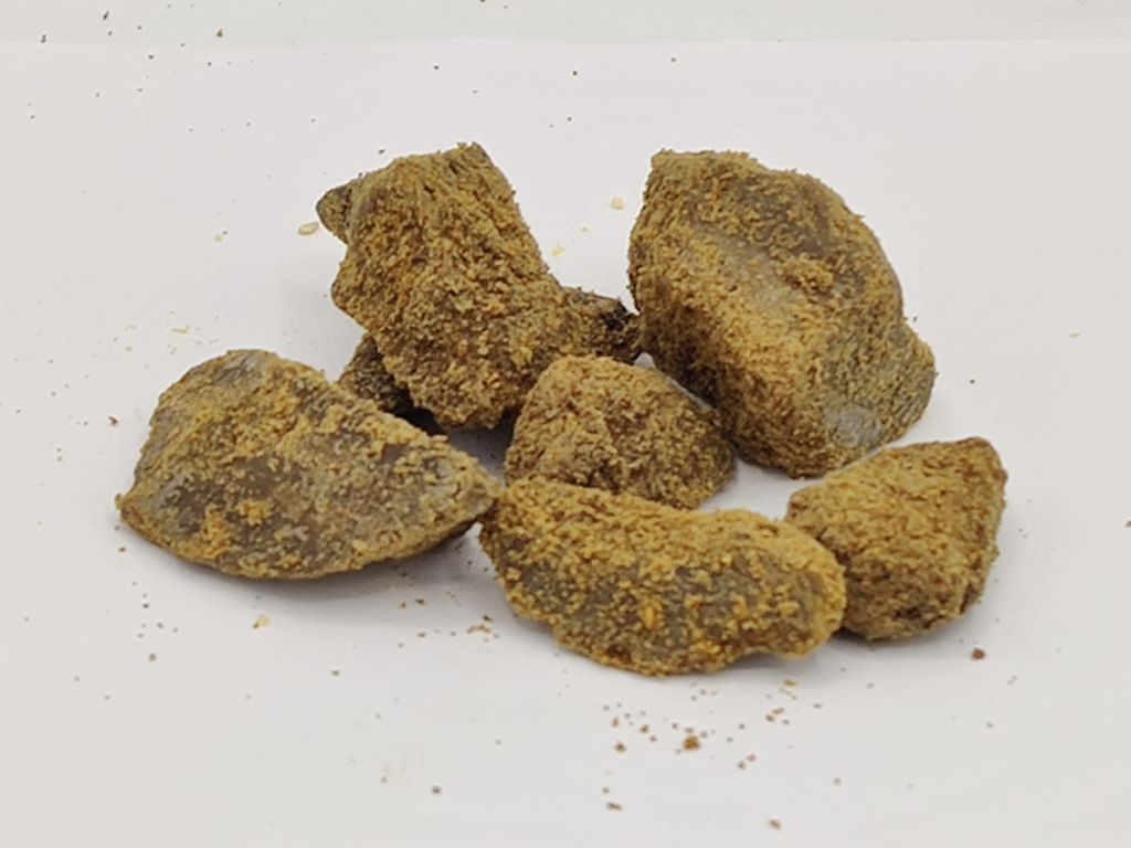 Вид: Твёрдая масса жёлто-коричневого цвета в виде кусочков неправильной формы.